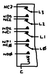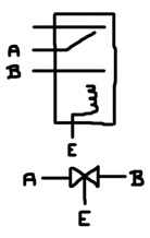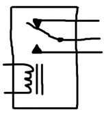 Many different kinds of relays exist, but the relay depicted here is the only kind provided by Tofu. One useful type of relay contains 1 coil and multiple switches like this four double-pole relay: