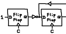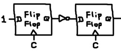 One interesting thing to note is that no matter how long the chain is, it always takes the same number of iterations to generate the output because all the relay levers flip in parallel.
