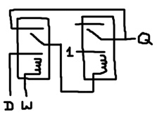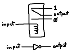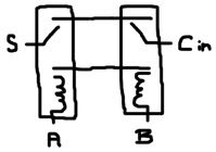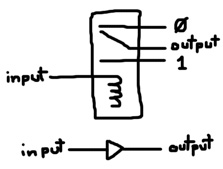 If you were actually constructing a computing device out of relays, you’d probably want to use as few as possible. Consider constructing a 2-input AND gate with a single relay: