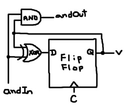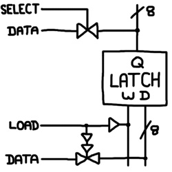 This divider assumes that the dividend and the divisor are positive values. As with the multiplier, we can wrap the divider to allow it handle signed inputs. For signed division, the quotient is signed when the signs of the dividend and the divisor don’t match. We can check that with an XOR gate. The sign of the remainder is set to agree with the dividend.