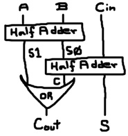 # Full Adder def fullAdder carryIn a b carryOut sum : halfAdder a b s1 s0 halfAdder s0 carryIn carry sum or s1 carry carryOut
